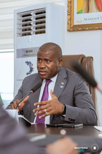 Conakry, le 7 octobre 2025 – Dans le cadre de la mise en œuvre de l’initiative SIMANDOU ACADEMY, dédiée à la formation de l’élite de demain et portée par le Président de la République, Son Excellence le Général d’Armée Mamadi DOUMBOUYA, le Ministre du Plan et de la Coopération internationale, Ismaël NABE, a reçu ce mardi les 45 lauréats guinéens admis aux concours d’entrée des Écoles africaines de Statistique. L’audience s’est tenue en présence du Secrétaire général, M. Kabèlè SOUMAH, de la Cheffe de cabinet, Mme Fatoumata TOURE, ainsi que des responsables de l’Institut National de la Statistique (INS), Dr Makan DOUMBOUYA et M. Mamadou CAMARA, respectivement Directeur général et Directeur général adjoint.