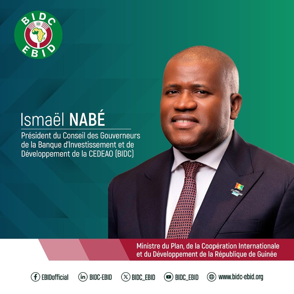 Lors de sa 24ème assemblée générale annuelle, tenue le 8 avril 2026, à Accra, le Conseil des gouverneurs de la Banque pour l’investissement et le développement de la CEDEAO (BID) a élu à l’unanimité l’honorable M. Ismael NABE ministre du Plan, de la Coopération internationale et du Développement de la République de Guinée, président du Conseil des gouverneurs.