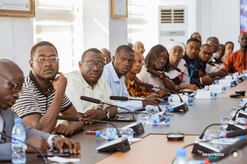 Conakry, le 7 octobre 2025 – Dans le cadre de la mise en œuvre de l’initiative SIMANDOU ACADEMY, dédiée à la formation de l’élite de demain et portée par le Président de la République, Son Excellence le Général d’Armée Mamadi DOUMBOUYA, le Ministre du Plan et de la Coopération internationale, Ismaël NABE, a reçu ce mardi les 45 lauréats guinéens admis aux concours d’entrée des Écoles africaines de Statistique. L’audience s’est tenue en présence du Secrétaire général, M. Kabèlè SOUMAH, de la Cheffe de cabinet, Mme Fatoumata TOURE, ainsi que des responsables de l’Institut National de la Statistique (INS), Dr Makan DOUMBOUYA et M. Mamadou CAMARA, respectivement Directeur général et Directeur général adjoint.