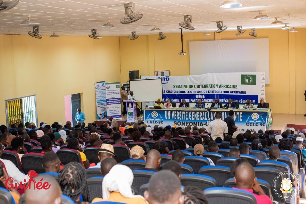 Jeudi 26 octobre 2023 – À l’occasion de la Semaine de l’Intégration Africaine, organisée par 𝗹𝗲 𝗖𝗲𝗻𝘁𝗿𝗲 𝗱’𝗜𝗻𝗻𝗼𝘃𝗮𝘁𝗶𝗼𝗻 𝗲𝘁 𝗱𝗲 𝗥𝗲𝗰𝗵𝗲𝗿𝗰𝗵𝗲 𝗽𝗼𝘂𝗿 𝗹𝗲 𝗗𝗲́𝘃𝗲𝗹𝗼𝗽𝗽𝗲𝗺𝗲𝗻𝘁 (CIRD), 𝑴𝒂𝒅𝒂𝒎𝒆 𝑹𝒐𝒔𝒆 𝑷𝒐𝒍𝒂 𝑷𝒓𝒊𝒄𝒆𝒎𝒐𝒖, Ministre du Plan et de la Coopération Internationale, a présidé la cérémonie d’ouverture 𝗱𝘂 𝗖𝗼𝗹𝗹𝗼𝗾𝘂𝗲 𝗜𝗻𝘁𝗲𝗿𝗻𝗮𝘁𝗶𝗼𝗻𝗮𝗹 𝘀𝘂𝗿 𝗹’𝗜𝗻𝘁𝗲́𝗴𝗿𝗮𝘁𝗶𝗼𝗻 𝗔𝗳𝗿𝗶𝗰𝗮𝗶𝗻𝗲 𝗰𝗼𝗻𝘀𝗮𝗰𝗿𝗲́ 𝗮̀ 𝗹𝗮 𝗰𝗲́𝗹𝗲́𝗯𝗿𝗮𝘁𝗶𝗼𝗻 𝗱𝗲𝘀 𝟲𝟬 𝗮𝗻𝘀 𝗱𝗲 𝗹’𝗢𝗨𝗔/𝗨𝗔. Cette cérémonie s’est tenue à l’Université Général Lansana Conté de Sonfonia.